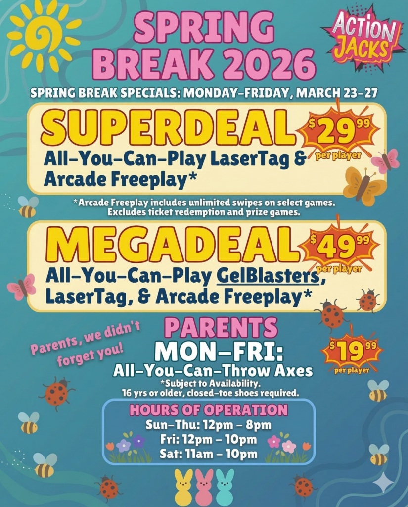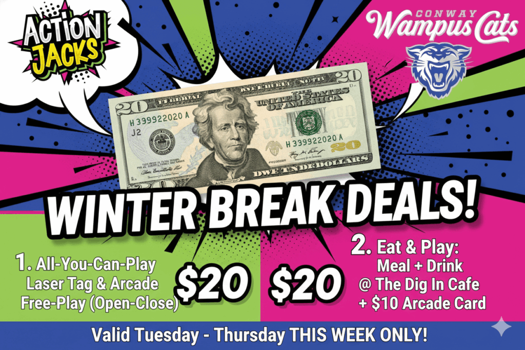 Arkansas’s #1 Family spot for food, drinks, laser tag, axe throwing, & arcade fun!